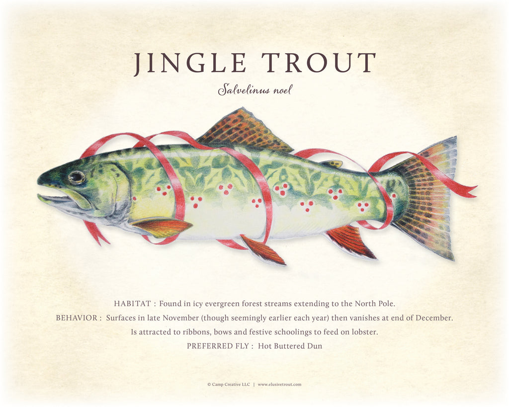 If the thought of angling in the winter seems too adventurous, here's a solution! These elusive trout are impossible to catch, except on this website. Each trout's story is recounted from sharp memory by talented anglers, and is accompanied by beautifully crafted lllustrations to make your own search for the world's rarest trout all the more entertaining. Especially fun with a hot buttered rum and some slipper socks by the fire. So, put your rod down for awhile and join us. Have a great holiday season!